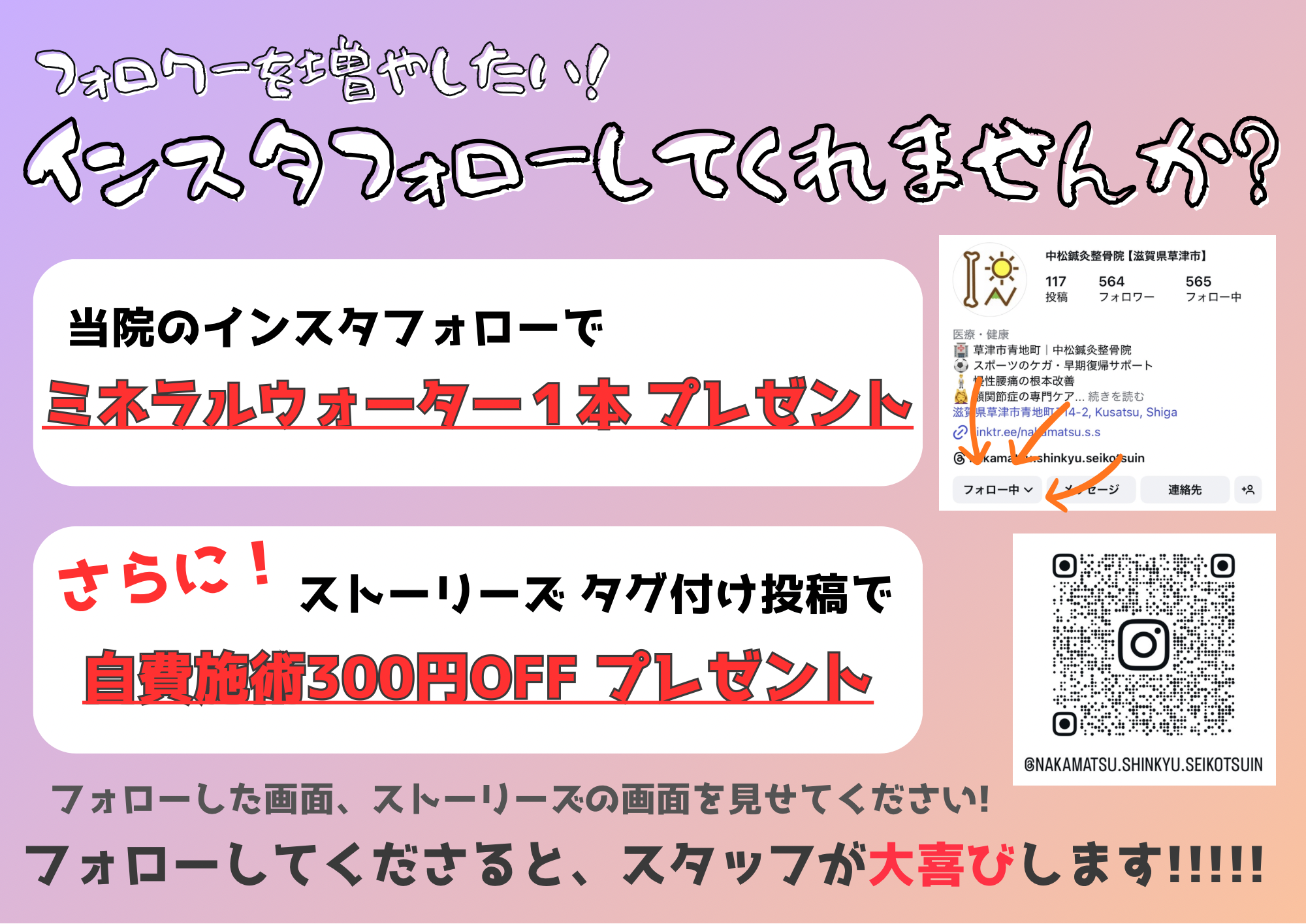 【@中松鍼灸整骨院】をタグ付けして投稿してくれた方には、